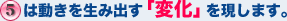 5は安定したものから新たなる動きを生み出し、留まることのない活動力を持って、さらに進歩させていく働きを現わしています。また、5は生命力や人間そのものを現わし、4の物質世界の誕生から、知性を持った人間の出現を意味し、様々な思索や心の不安定さ、体験による学び、変化していく自由を象徴する数といわれています。